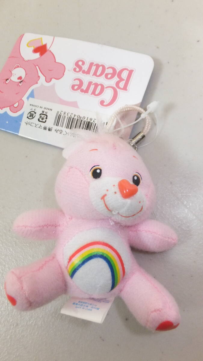 > ★Care Bears★Cheer Bear plash toy charm ケアベアーチアベア キャラクターキーホルダーチャームぬいぐるみ USED IN JAPAN