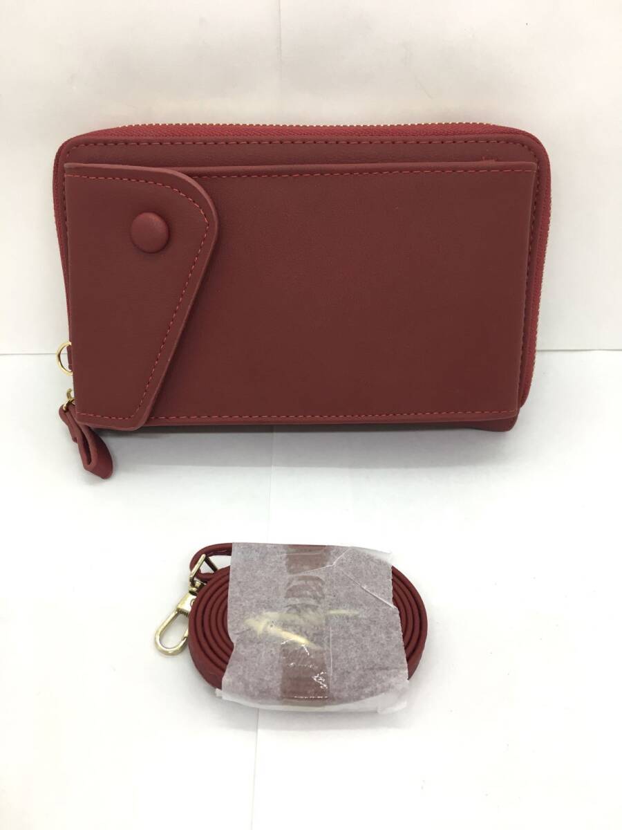 > 【未使用保管品】スマホバッグ 斜め掛け ショルダー ストラップ 付 ポーチ 札入れ 小銭入れ カード入れ 赤