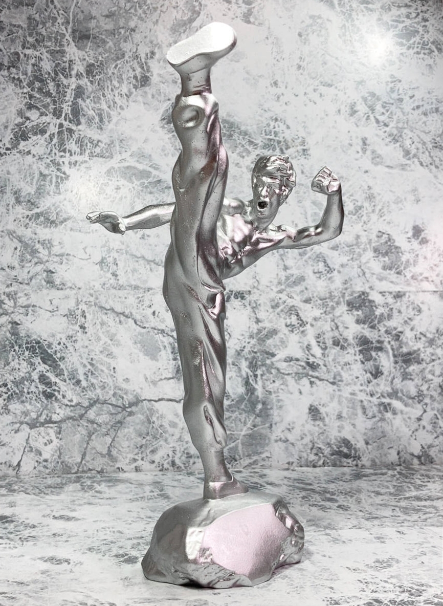 - ★送料無料★「ブルース・リー 銅像風 フィギュア シルバー」tface-g 【タグ:映画、インテリア】1 T07/01