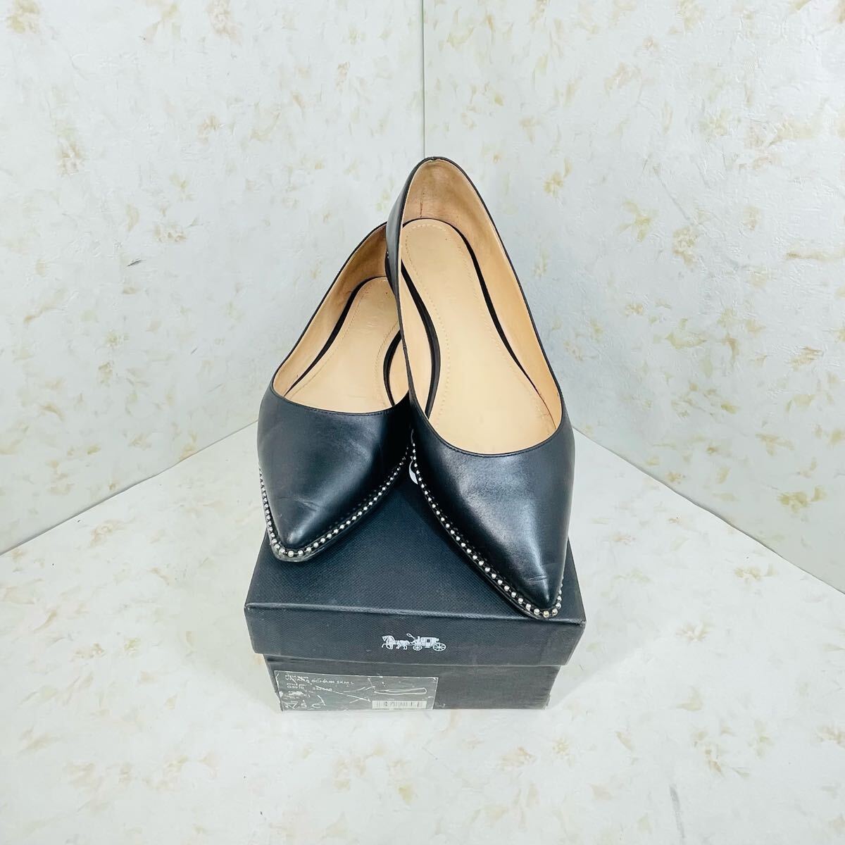 - 同梱可【45】 DMky-7.1-1/COACH パンプス スタッズ付き黒ポインテッドトゥシューズ 27.0