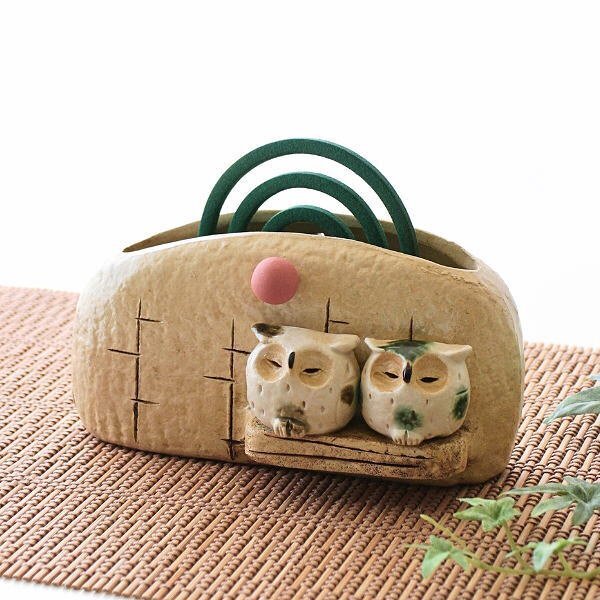 - 蚊取り線香入れ おしゃれ フクロウ 蚊やり 蚊取り線香ホルダー 和風 かわいい 陶器の蚊遣り ふくろう 送料無料(一部地域除く) mkn2035