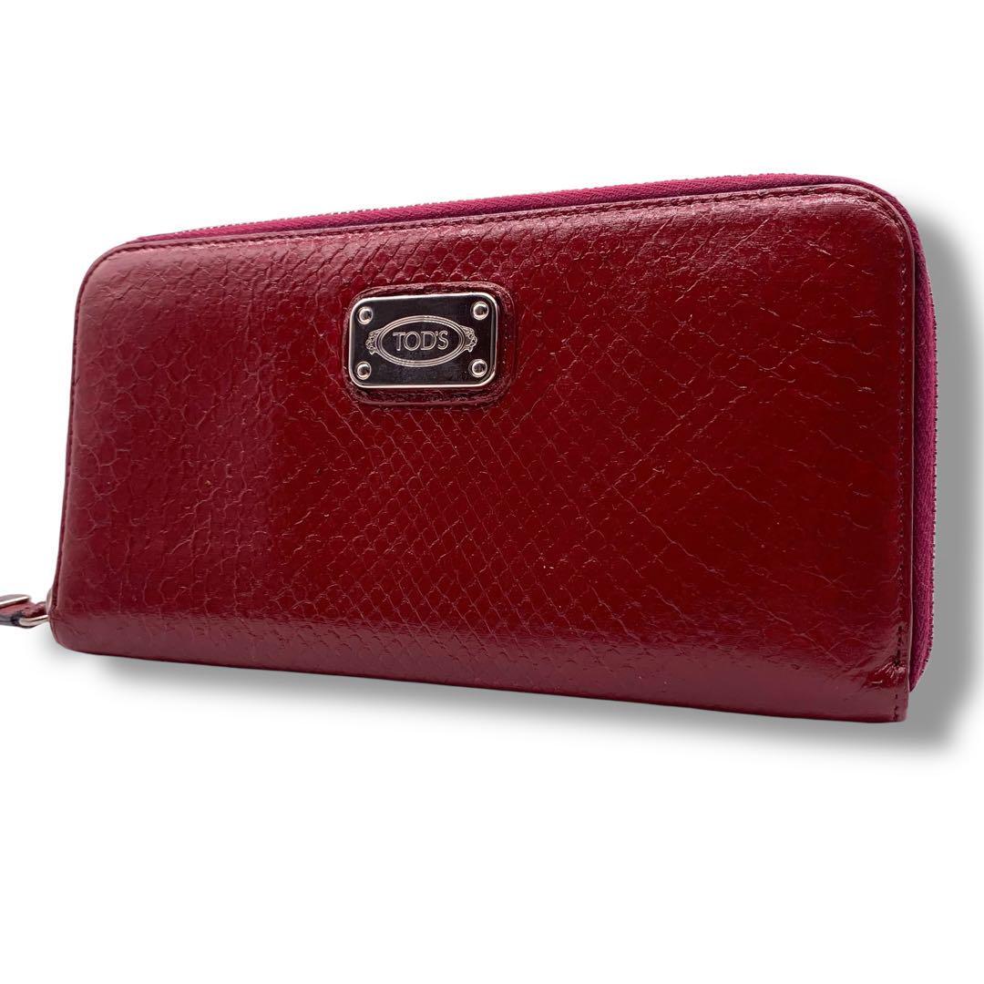 - トッズ ラウンドファスナー 財布 長財布 赤 パイソン