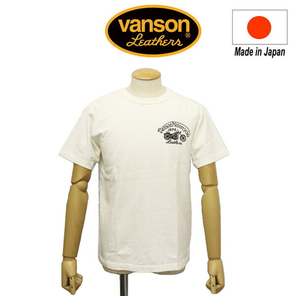 - VANSON (バンソン) 882V070N MOTORCYCLE 74 モーターサイクル ショートスリーブ Tシャツ 半袖 日本製 OFF WHITE M