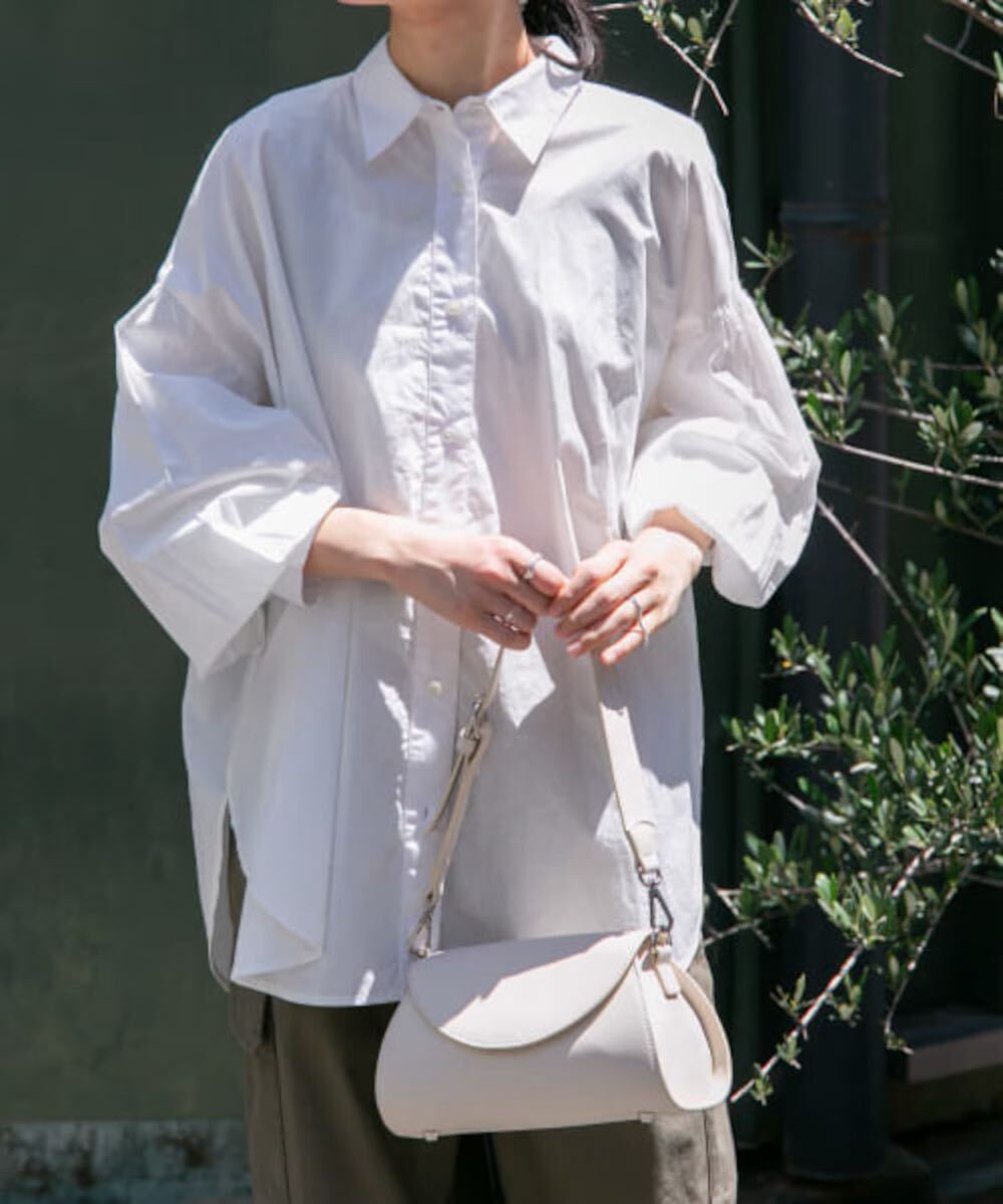 > 美品 アーバンリサーチ URBAN RESEARCH FORK&SPOON 襟 コットン ボリューム スリーブ シャツ ブラウス 長袖 チュニック 白 オフホワイト
