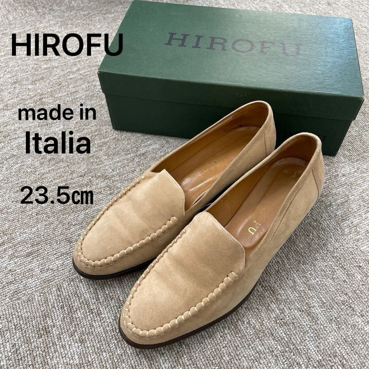 - 【489】HIROFU ヒロフ イタリア製 レザー ローファー フラットシューズ ベージュ 23.5cm 箱つき パンプス ニャンキーヒール