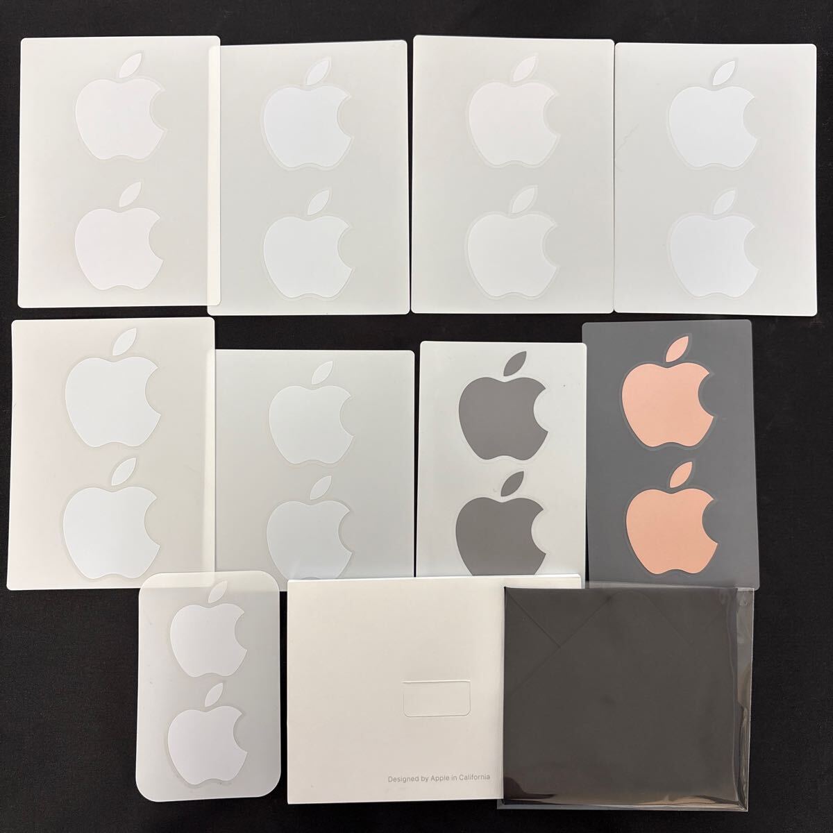 > Apple Mac? 純正品 未使用ロゴ ステッカー 9シート+クロス1枚 まとめて シール りんご 林檎 ホワイト ピンク シルバー 送料無料