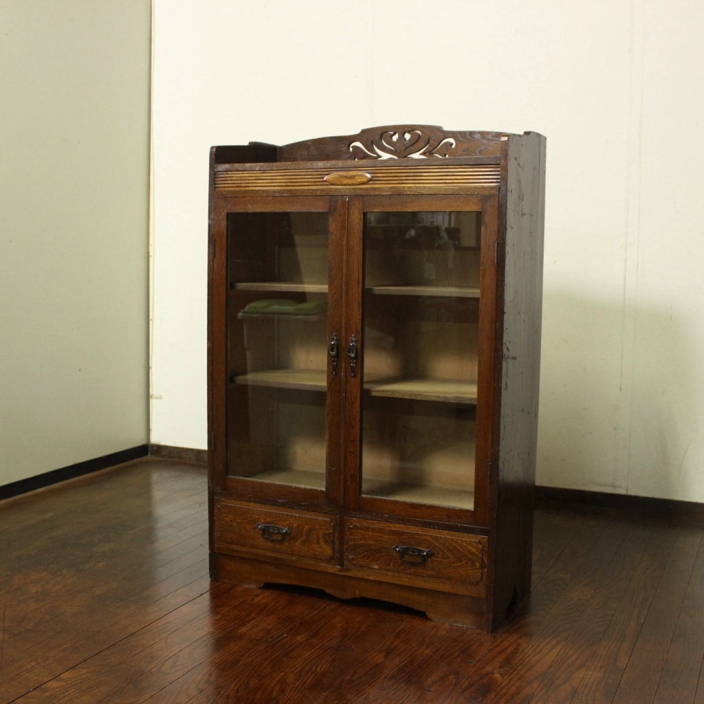 - アンティーク・レトロ 古い木製本棚 本箱/収納棚/古民家/キャビネット/食器棚/飾棚/時代箪笥/戸棚/水屋店舗什器小引出し/無垢材