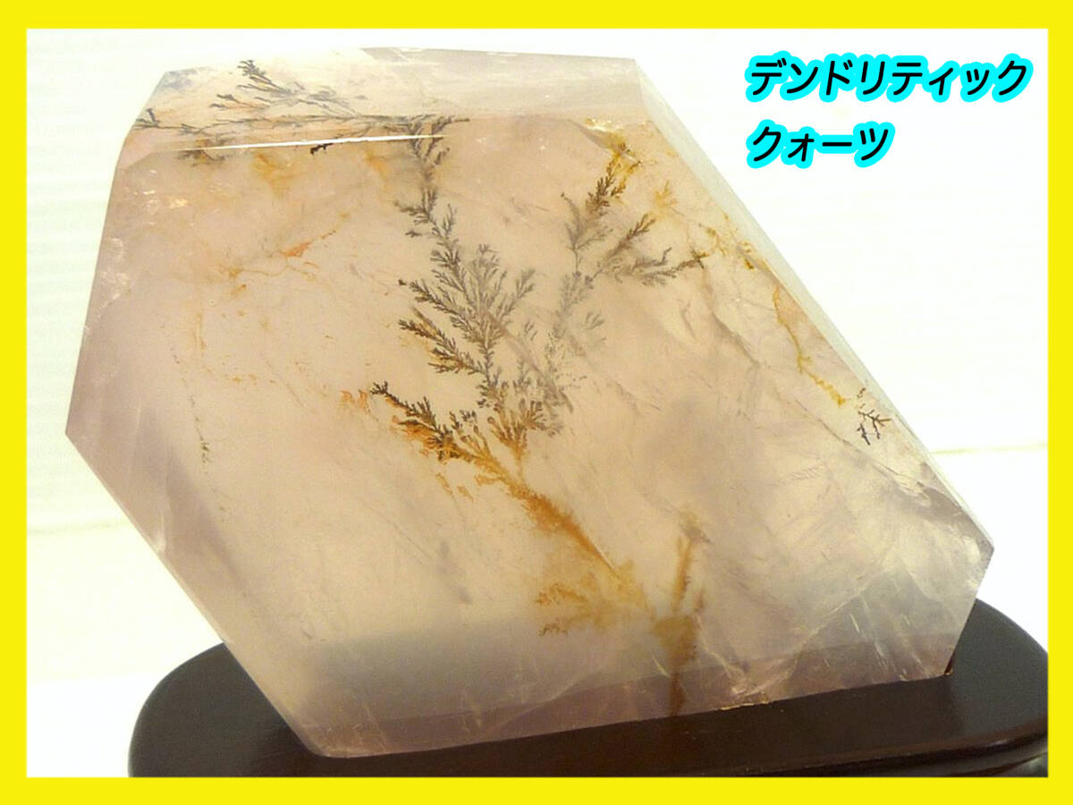 > デンドリティック クォーツ 樹枝状の模様入り水晶 模樹石 忍石 デンドライト 森林の風景 木製台付 ヒーリング 天然石 403g 瞑想 癒し調和⑤