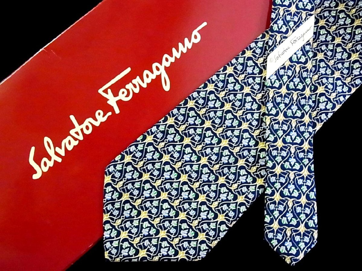 - ♪今週の特売980円~♪4067♪良品【FERRAGAMO】フェラガモ【葉っぱ 植物 柄】ネクタイ♪