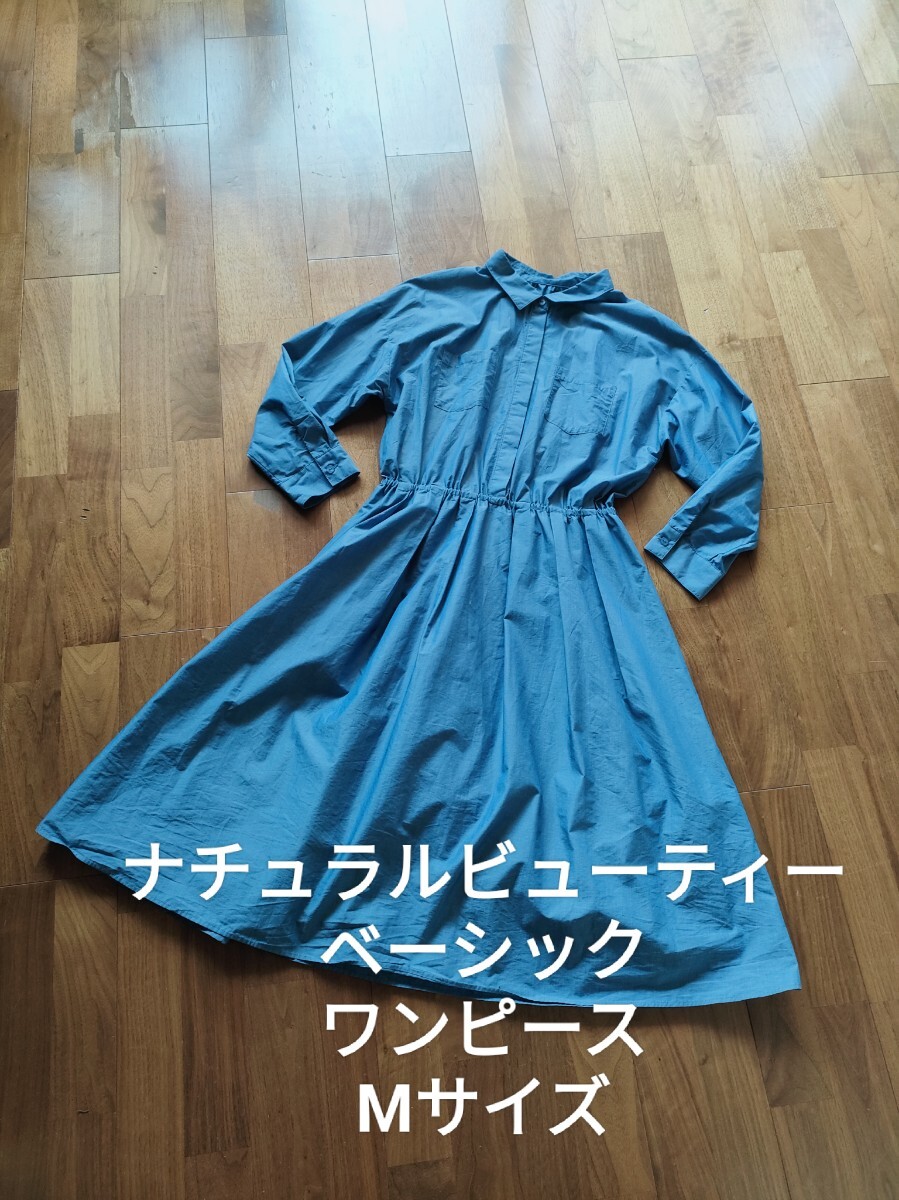 > ナチュラルビューティーベーシック 長袖 シャツ ロングワンピース ブルー M