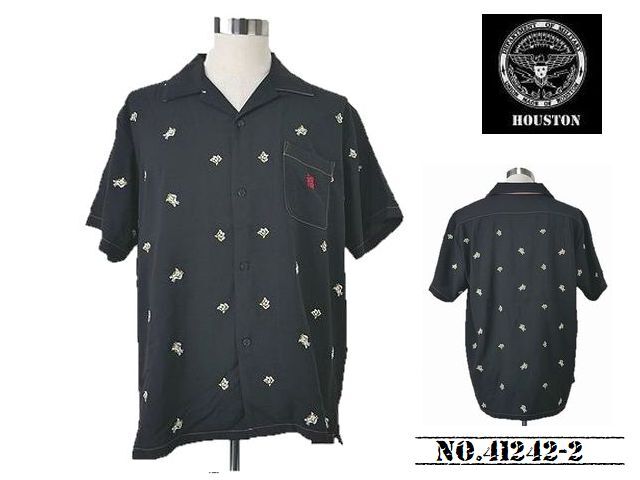 > 【送料無料 43%OFF】HOUSTON ヒューストン 総柄刺繍 スーベニアシャツ 「VIETNAM TIGER」柄 NO.41242-2 BLACK_Lサイズ