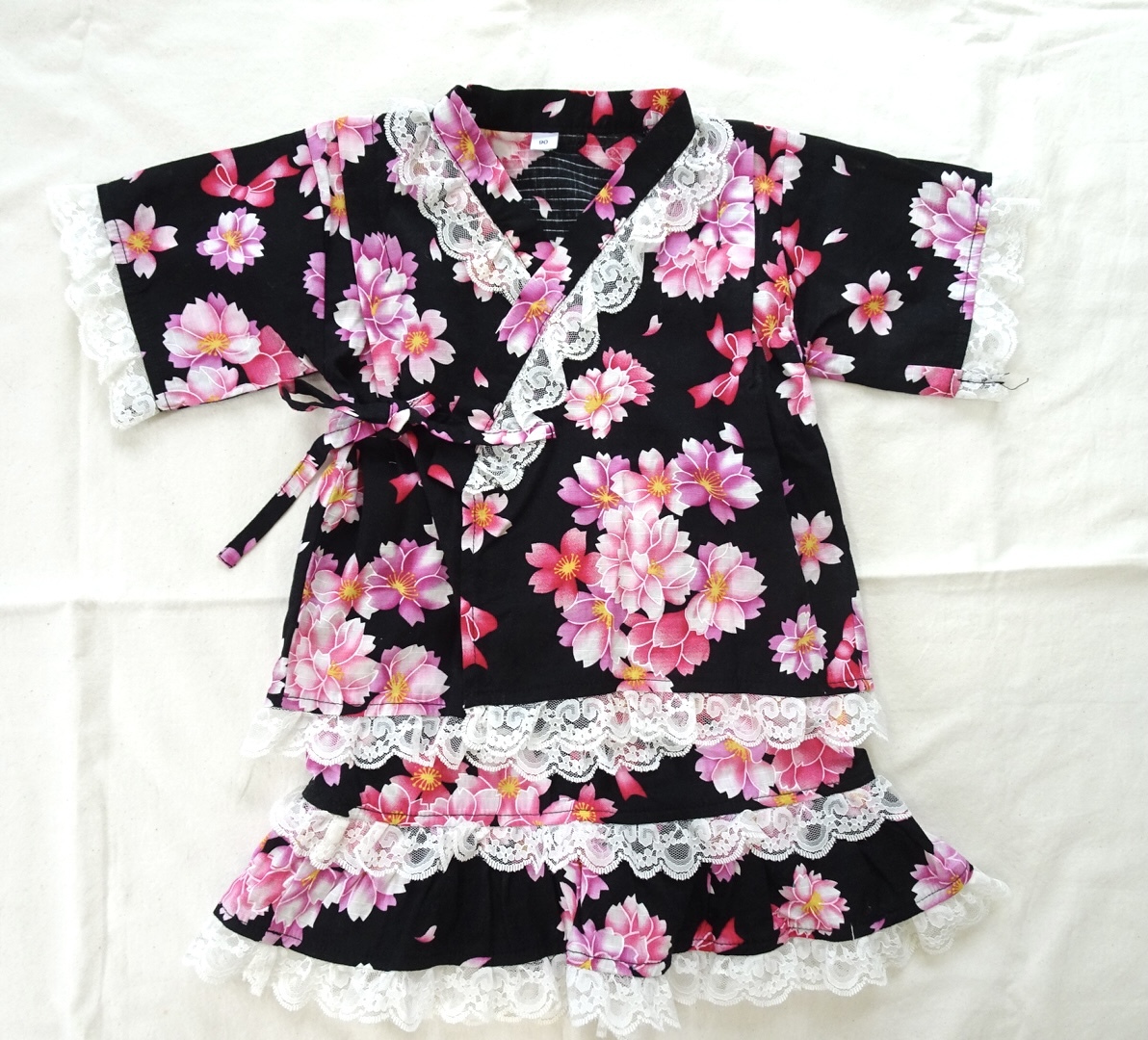 - 甚平★スカートタイプ★黒★花柄★レース★90