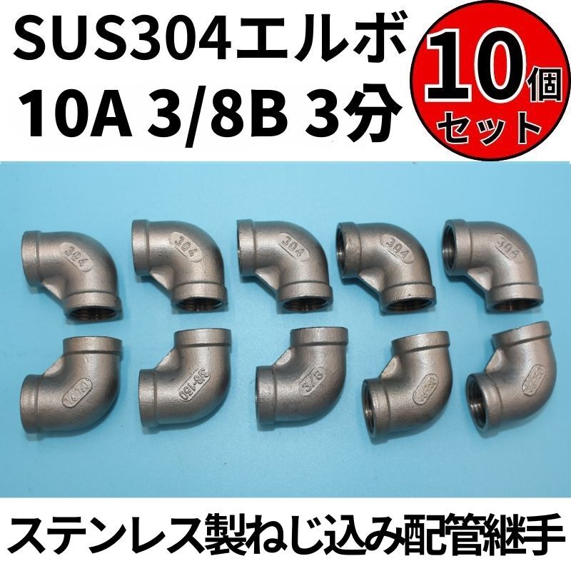 - SUS304 エルボ 10A 3/8B 3分 10個セット ステンレス製 ねじ込み配管継手