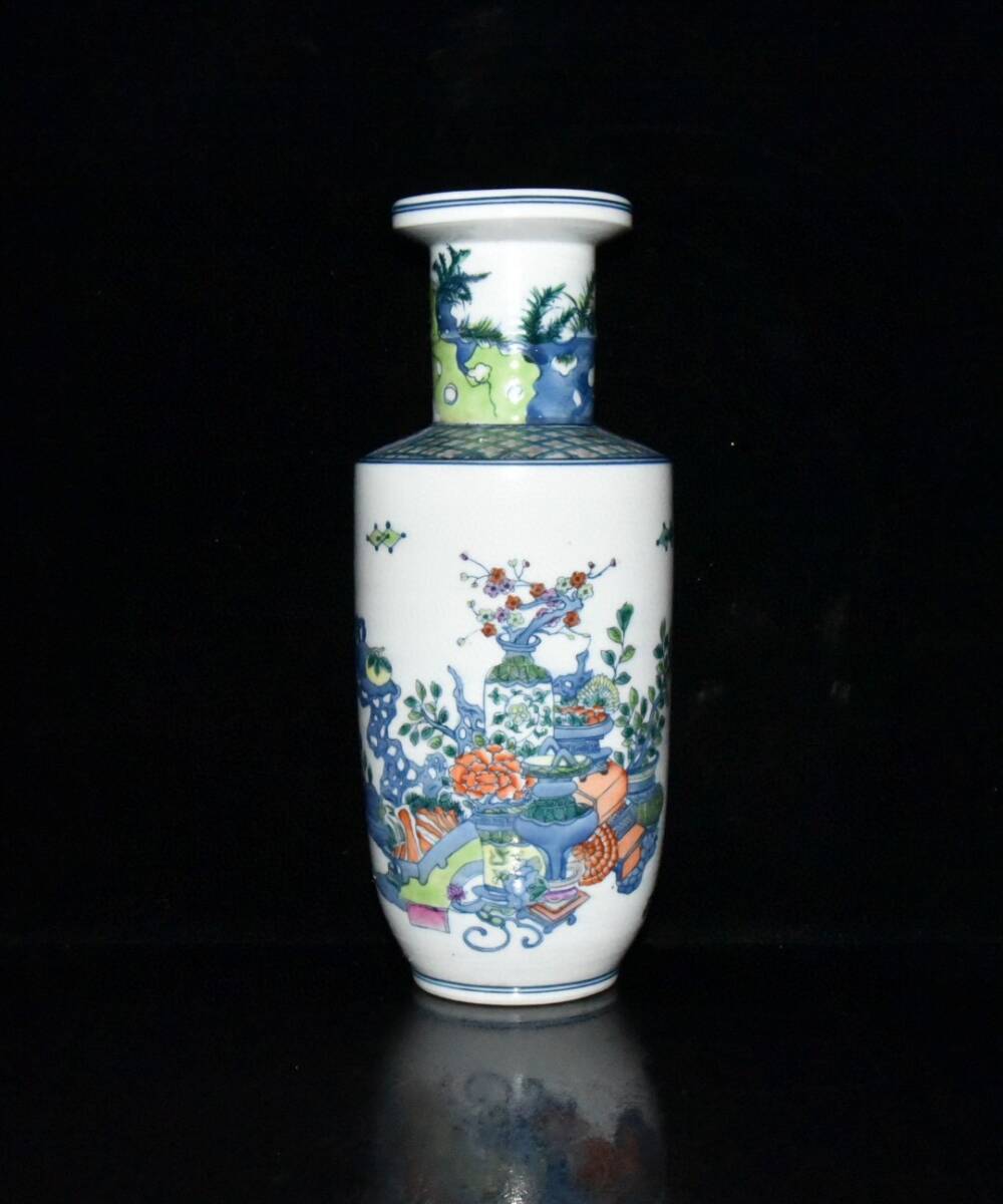 - 【超珍館蔵】清 康熙年製款 古陶瓷品 斗彩 博古花紋 抱珠瓶 陶藝 古賞物 古董品 古美術品 時代物 旧家蔵出 稀少珍蔵品