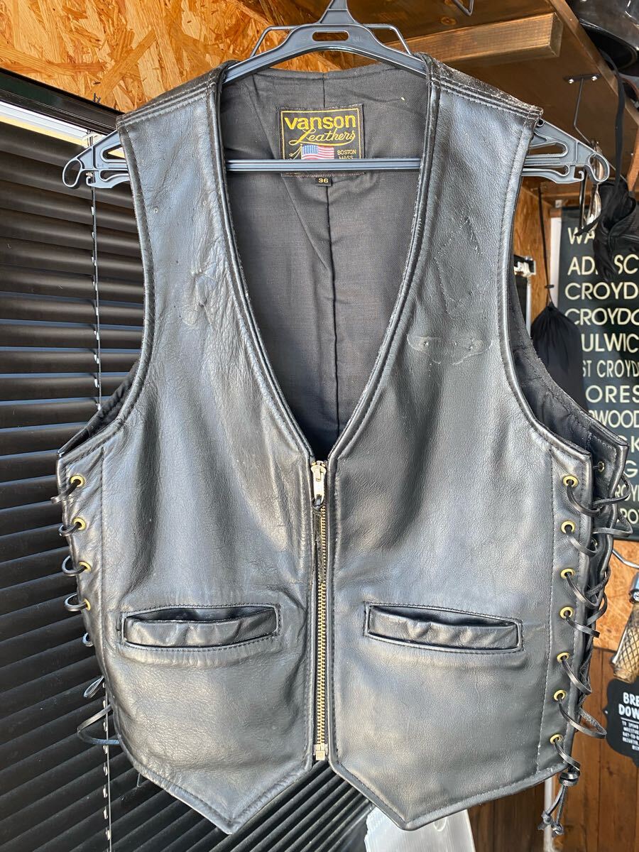 - レザーベスト ブラック レザー ベスト バンソン サイズ36 VANSON USA 本革 バイカー 黒 ヴィンテージ