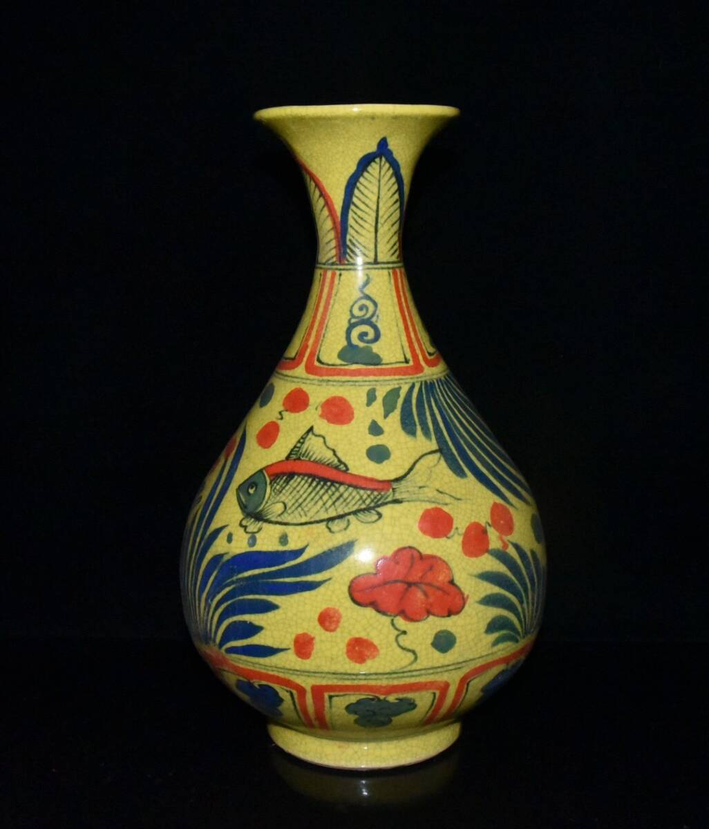 - 【超珍館蔵】元 古陶瓷品 釉中彩 開片 魚草紋 玉壺春瓶 陶藝 古賞物 古董品 古美術品 時代物 旧家蔵出 稀少珍蔵品