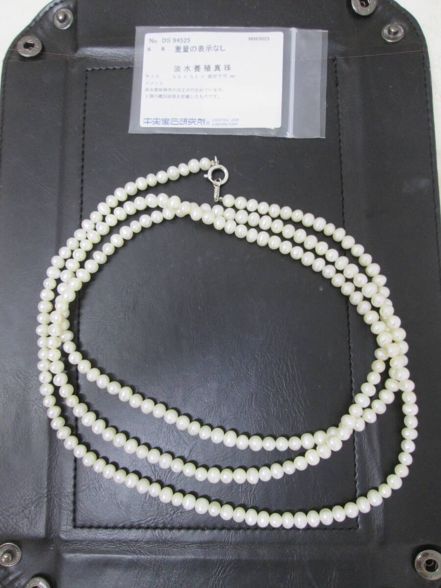 > (81)☆淡水パール ロングネックレス 留具 925 SILVER刻印 淡水養殖真珠 長さ約122cm 玉径5.1×5.8mm 中央宝石研究所 ソーティング付き