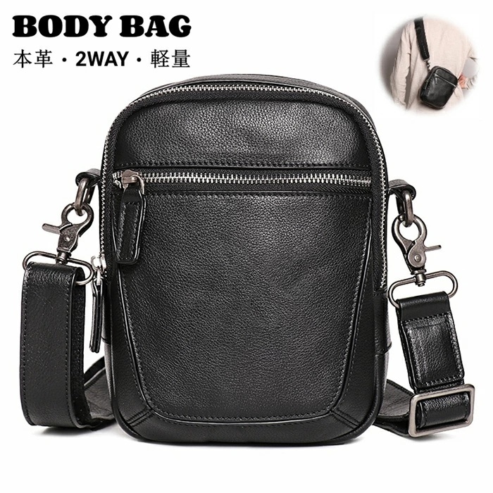 > メンズ 牛革 ベルトポーチ 本革 レザーバッグ レザーヒップバッグ 斜めがけ メッセンジャーバッグ ボディバッグ 2Way bg0684 ブラック
