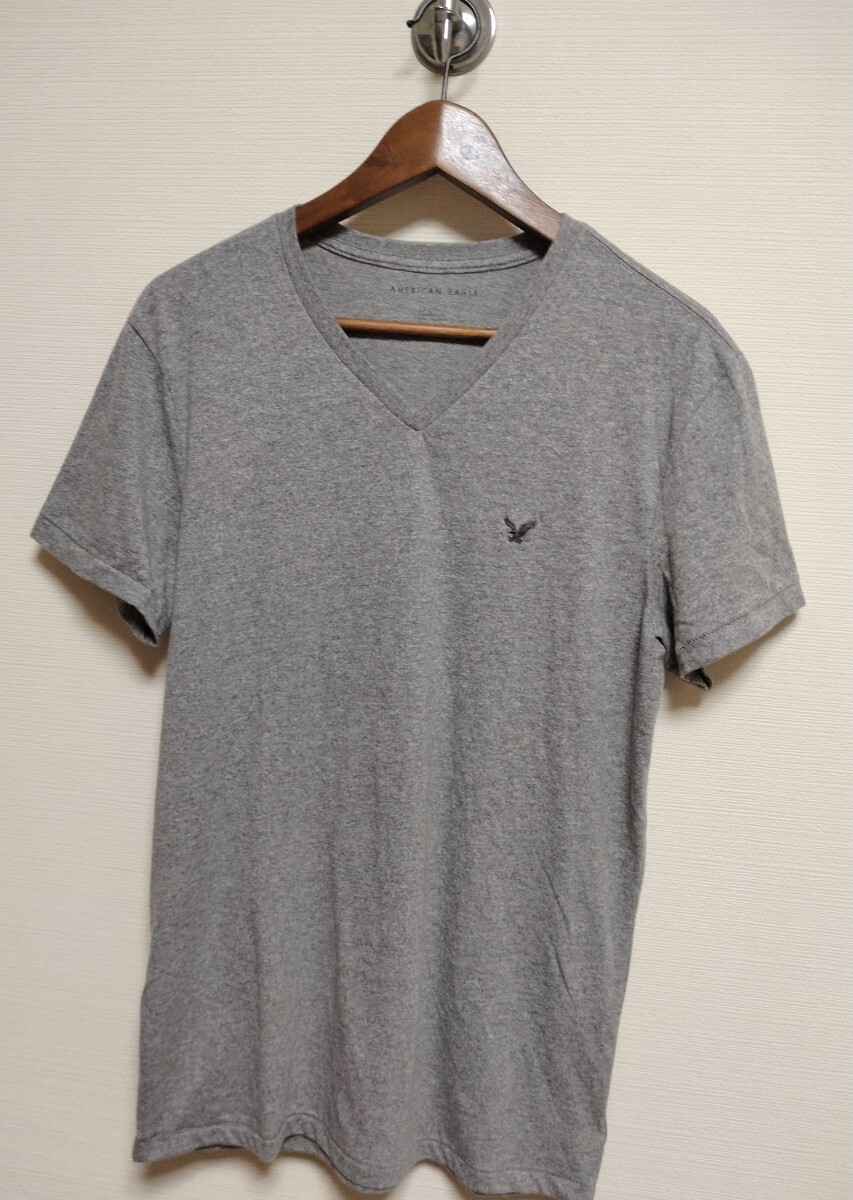 > 匿名配送込み 美品 AMERICAN EAGLE アメリカンイーグル Tシャツ カットソー 刺繍マーク Sサイズ М(日本)グレー Vネック