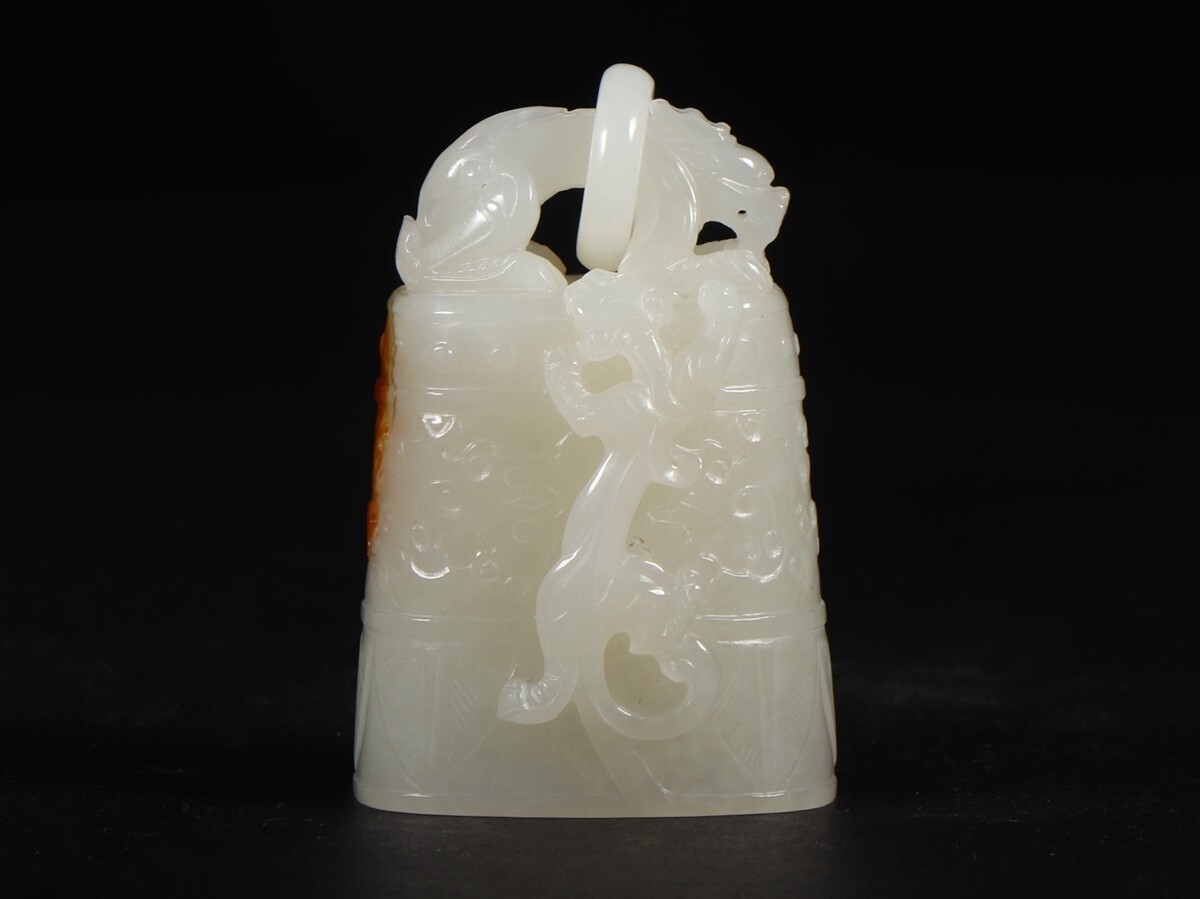 - 「時代物 和田玉 子料彫り 魑龍 鈴」極細工 賞物 中国古美術 旧蔵出