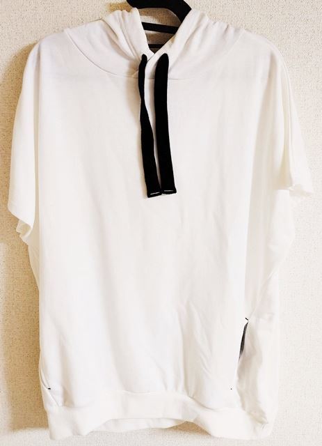 - Lサイズ BLUE STRIVE 半袖 パーカー スウェット トレーナー 白 黒紐 フード内グレー
