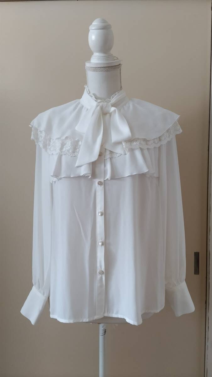 > No.2746_アクシーズファムポエティック_未使用白レースケープリボンブラウス