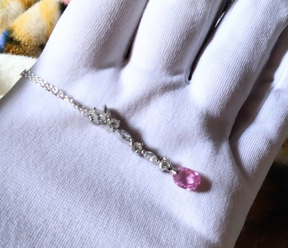 - ピンクジルコニアの煌めく素敵なシルバーネックレスNO.3