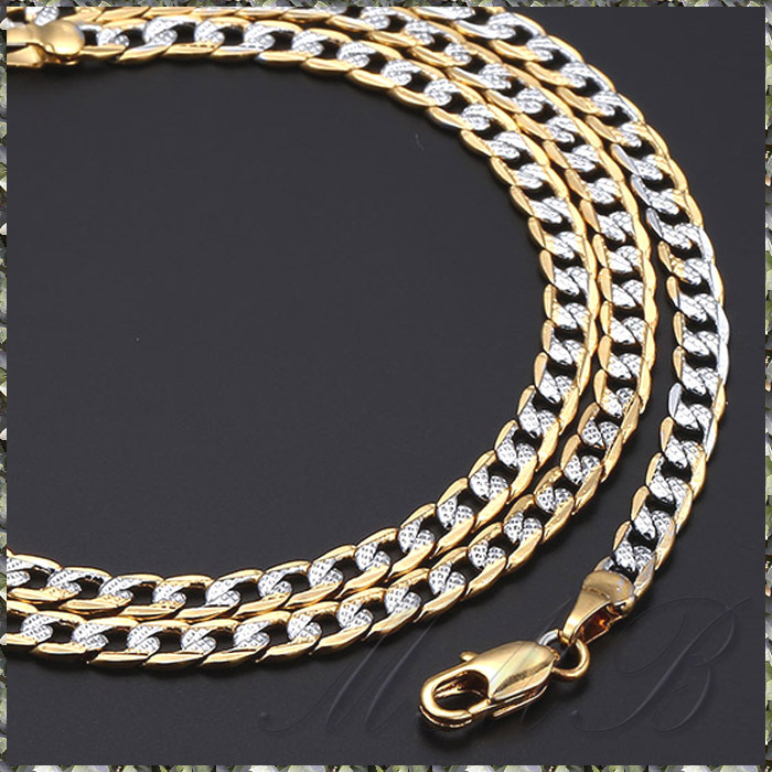 - [NECKLACE] Yellow & White Gold Filled センター ホワイトゴールド デザイン 喜平チェーン ネックレス 4x500mm (12g)