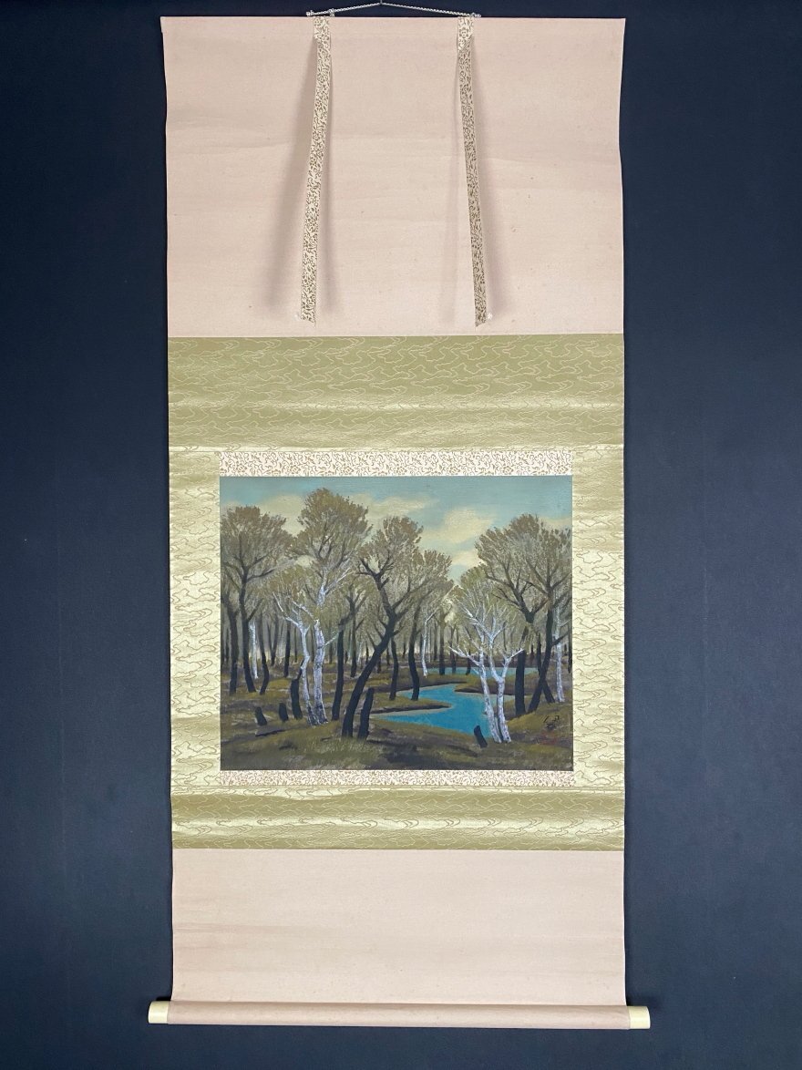 - 【模写】【一灯】【最終値下げ】ia8465〈小池裸石〉山林図「早春」阪急百貨店付属紙 共箱 速水御舟師事 長野の人