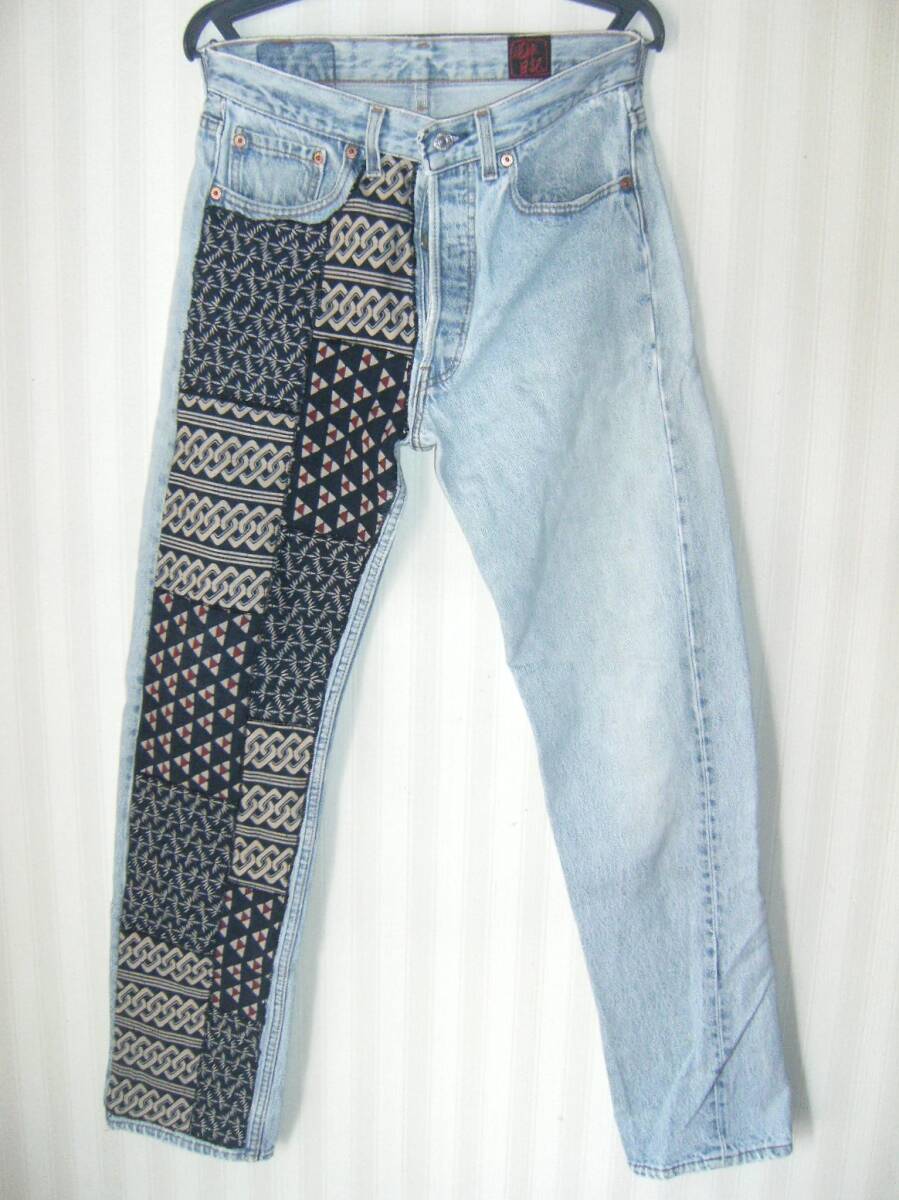 > ■泥棒日記 90's Levi's リーバイス 501-0115 和柄 加工 リメイク デニムパンツ W31■アイスブルー