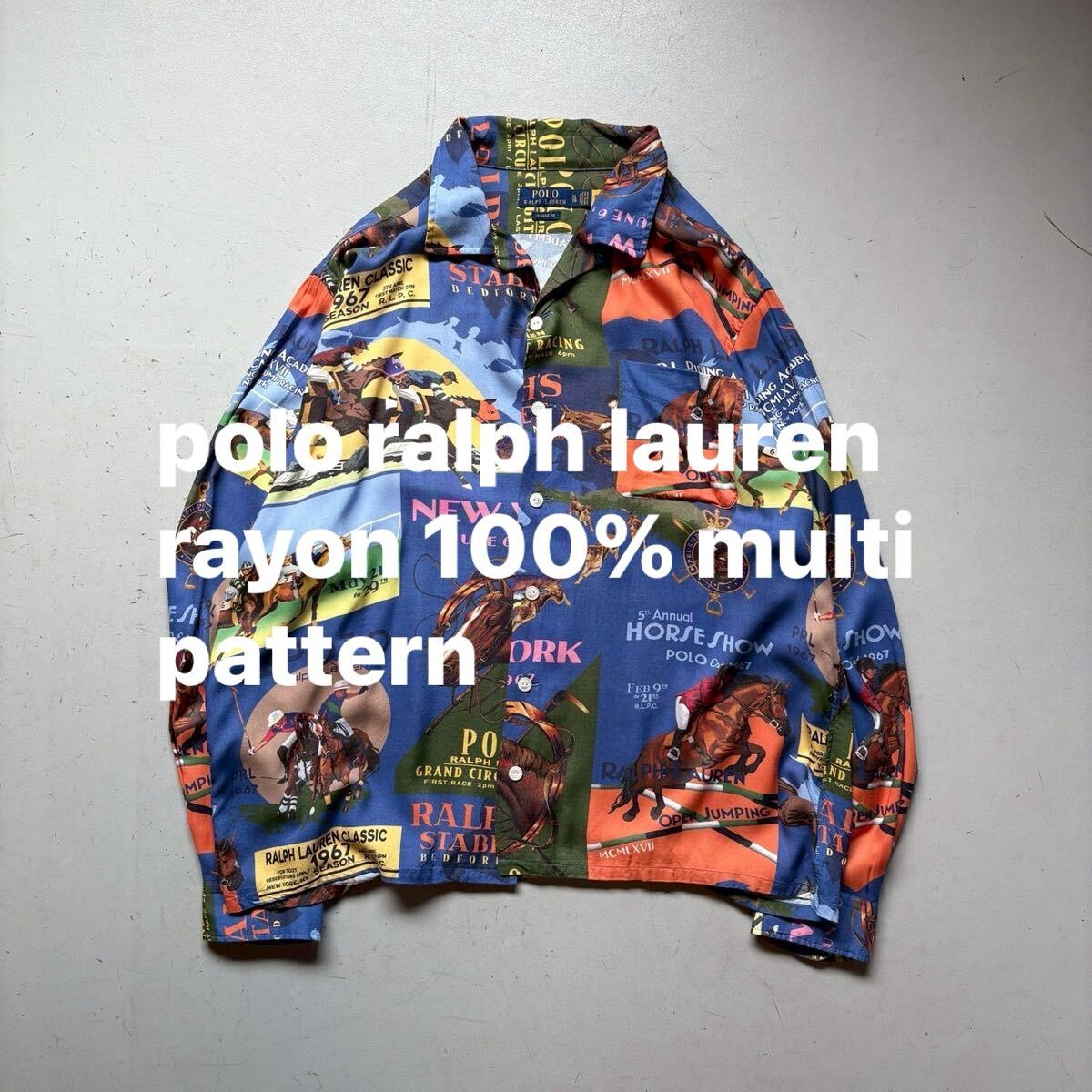 - polo ralph lauren 開襟シャツ 総柄シャツ 猫目ボタン ホースショー 100%レーヨン