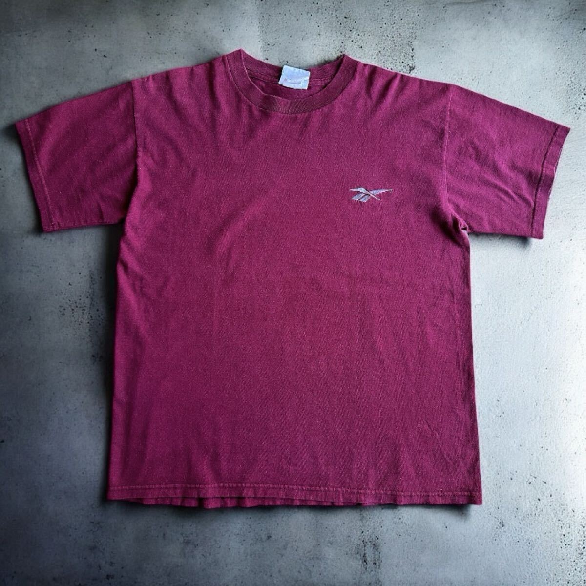 - 90s USA製 Reebok 刺繍ロゴ Tシャツ ボルドー Lサイズ ヴィンテージ古着 ダブルステッチ リーボック ワンポイント 一点物 希少