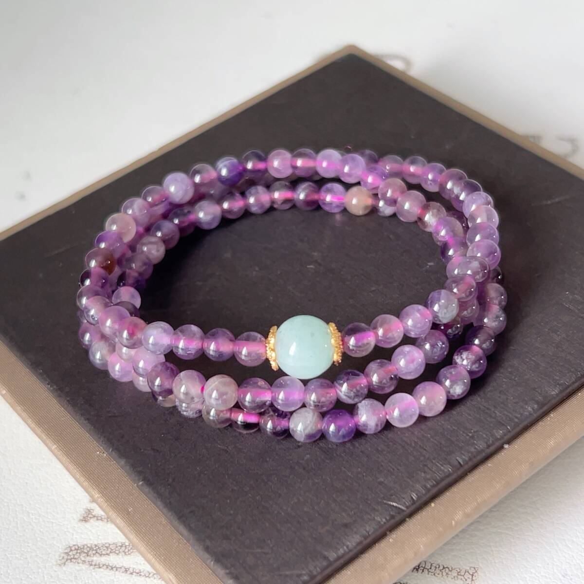 > ◇ウルグアイ産紫水晶(アメジスト)+アクアマリン1粒◇◇ブレスレット◇パワーストーン◇天然石◇巾着袋付き◇プレゼントにも 038B765