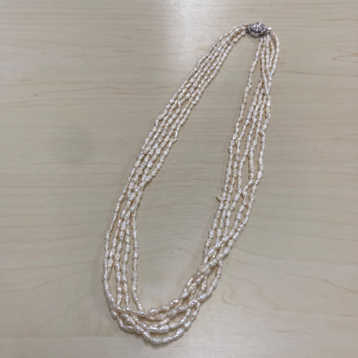 - ab 本真珠5連ネックレス パール5連ネックレス 51cm 32g SILVER