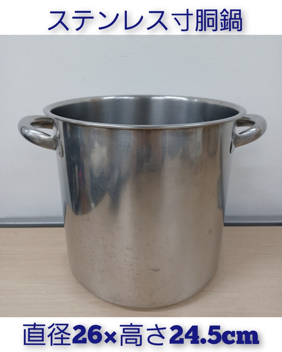 > 石)⑫ステンレス寸胴鍋 高さ24.5cm 耐酸鋼 取っ手付き 蓋なし 寸胴鍋 業務用 中古 調理器具 厨房機器 250707 F1-5