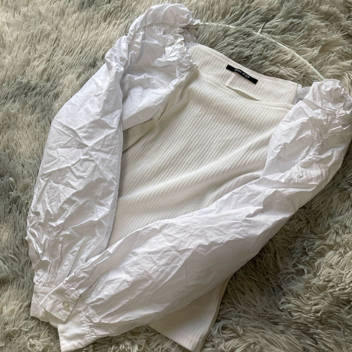 - one way 異素材袖リブカットソー白F美品31