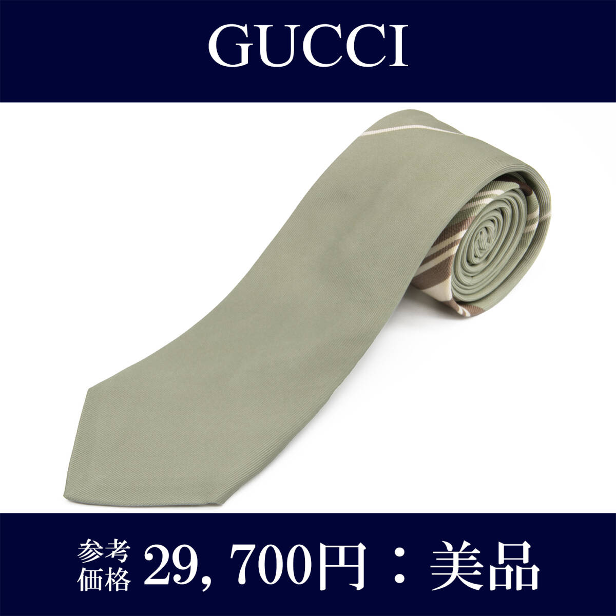 - 送料無料 グッチ ネクタイ レギュラータイ シルク 青緑 グレーベージュ 白 茶色 ビジネス ストライプ シンプル ロゴ 珍しい 綺麗 P080・2