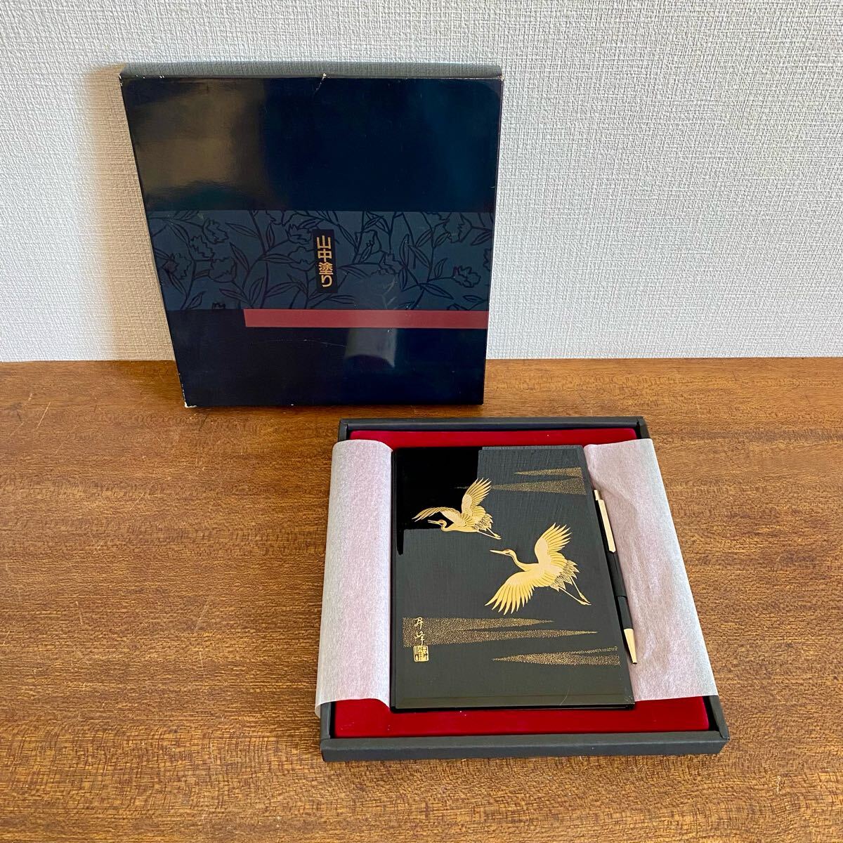 - 【未使用品】 山中塗り 大下昇峰 電話帳 ボールペンセット / 鶴絵 SAILOR セーラー 漆塗り 箱入り 保管品