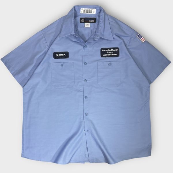 > ★USA星条旗ワッペン★Comber land county schoolロゴ★Uni Weave 半袖ワークシャツ sizeXXL 古着 クリーニング プレス済み 2311