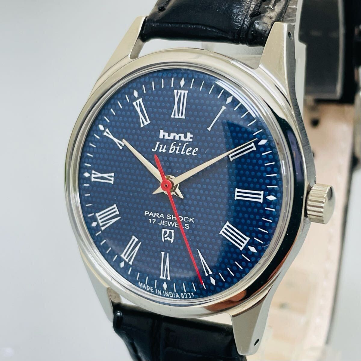 > 【イケてる】HMT/機械式/手巻き/ウォッチ/メンズ腕時計/ヴィンテージ /1970年代/アンティーク/ネイビー/中古品/即日発送 稼働品
