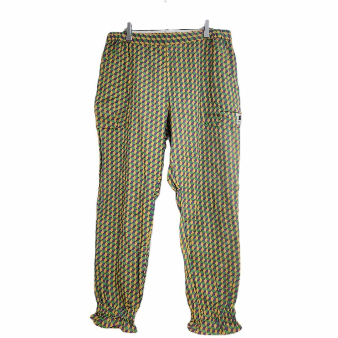 - ルームウェアパンツ もんぺパンツ 市松模様 ゴム裾 ワイドパンツ 3L