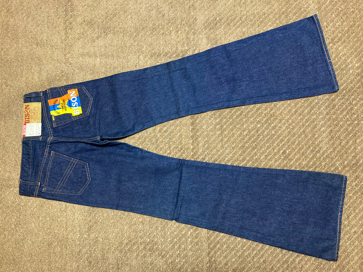 - ♪70's? タグ・フラッシャー付新品 日本製 Made in Japan BISON 1B 0517T バイソン 0517T フレアー ベルボトム ジャパンヴィンテージ♪