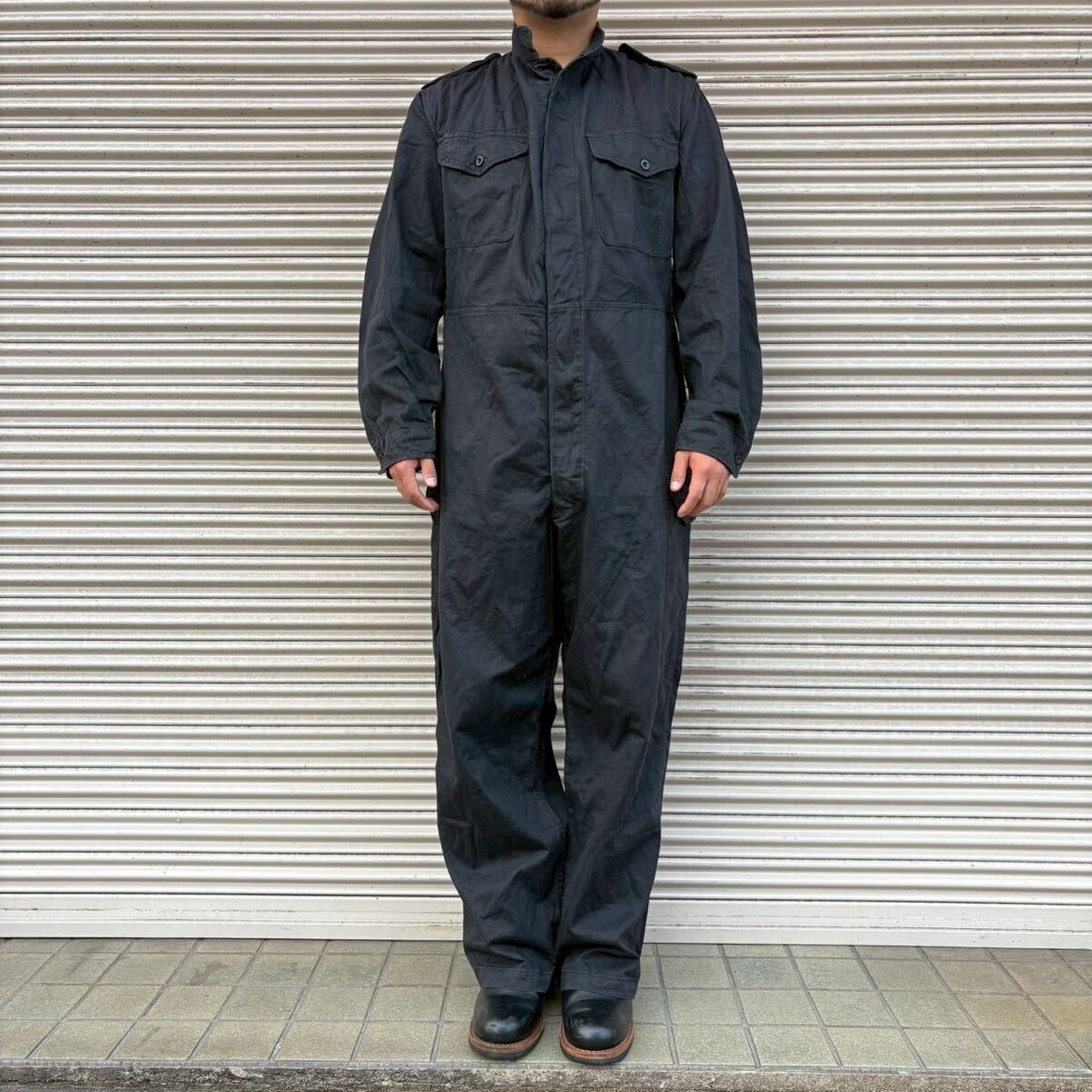 - 希少 良品 パキスタン軍 実物 ミリタリー オールインワン つなぎ 黒 ブラック ヴィンテージ カバーオール イギリス軍 タンカース スーツ