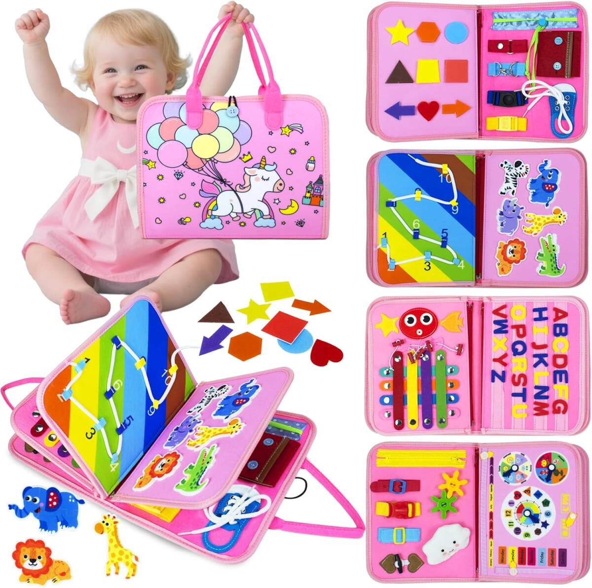 - ビジーボード モンテッソーリ 知育玩具 女の子 男の子 おもちゃ 学習玩具 指先訓練 お着替えの練習 色認識 形状認識