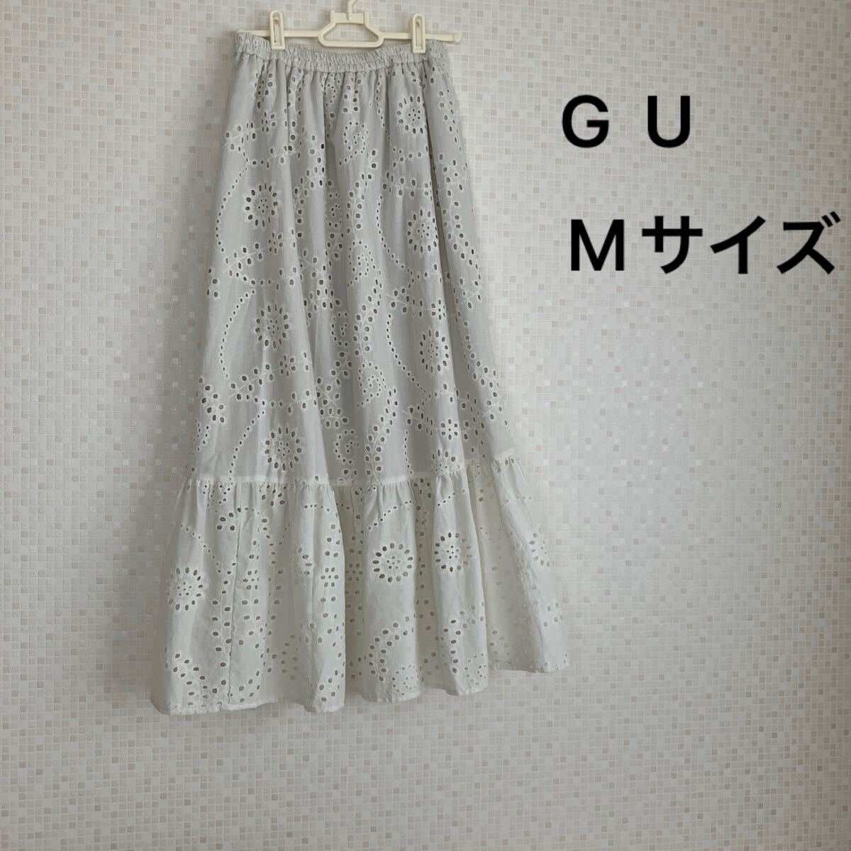 > ホワイトロングスカート/GU /フリル裾/ウエスト総ゴム/コットン素材
