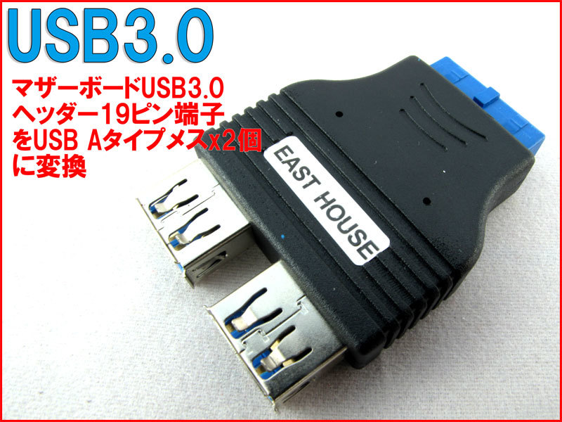 > 【便利グッズ USBA06】 USB3.0 2ポート 変換アダプター マザーボード USB3.0ヘッダー 19ピン端子 をUSB Aタイプメス x2個 に変換 n2it