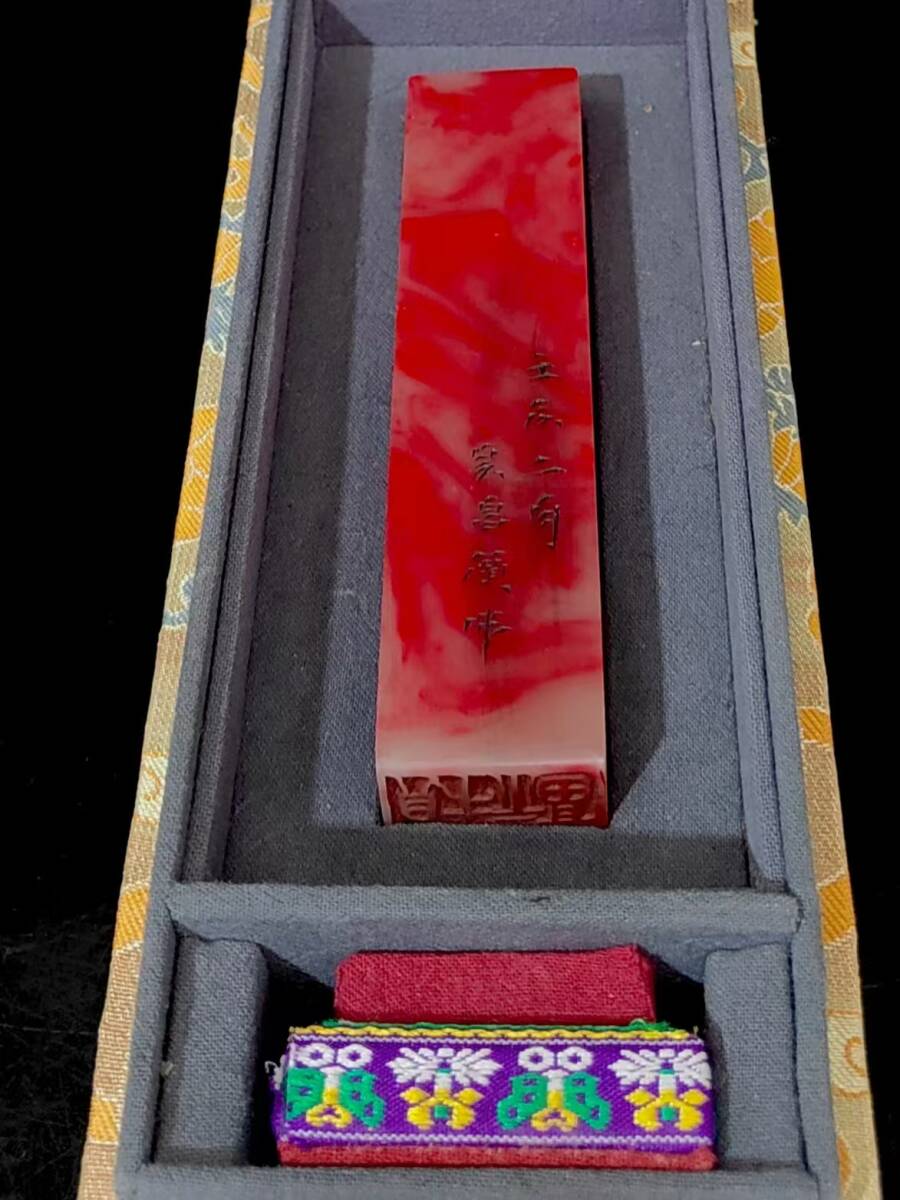 - 秘藏 印章 清代 寿山石老鶏血石印鑑 印鑑の方 古印材 唐物 古玉彫 純手彫り 天然石 極細工 稀少珍品 古美術 古賞物 置物 旧蔵 7.5