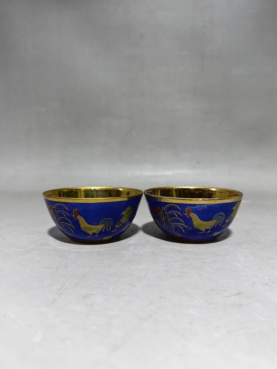- 蔵友旧蔵出 明 成化年製款 五彩 描金 鶏缸杯一對 稀少珍品 貴重品 古陶瓷品 置物 古賞物 中国古玩 中国古美術品