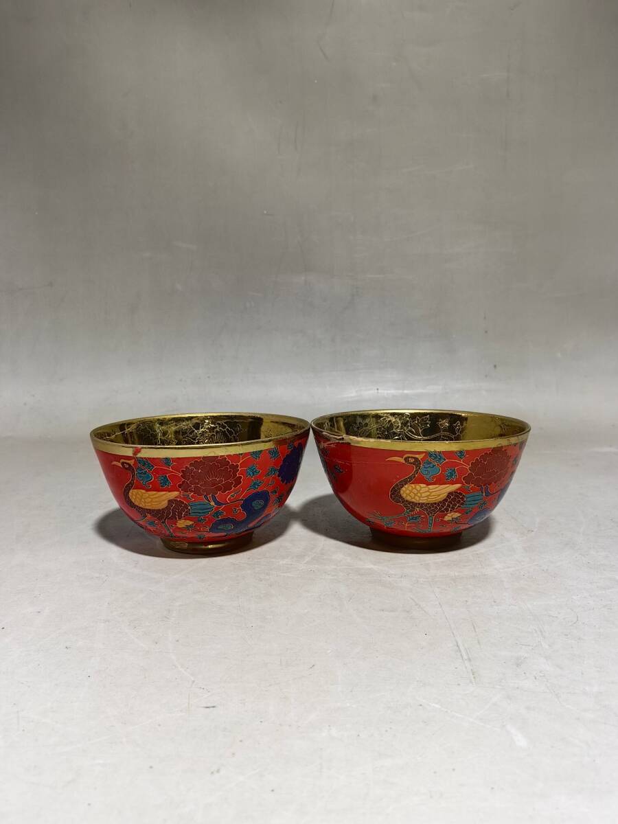 - 蔵友旧蔵出 明 成化年製款 五彩 描金 孔雀紋 供杯一對 稀少珍品 貴重品 古陶瓷品 置物 古賞物 中国古玩 中国古美術品