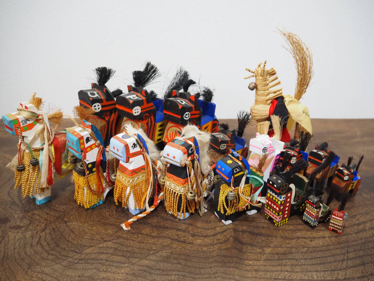 - 郷土玩具 木製人形 藁馬/八幡馬/チャグチャグ馬コ/三春駒 17点◆木地玩具 民芸品 民藝 工芸品 伝統工芸 レトロ置物検/福島三春青森